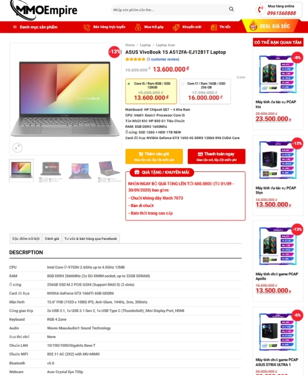 Review Source Code Theme WordPress bán máy tính, laptop