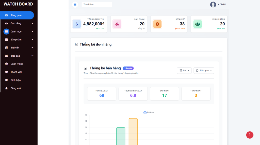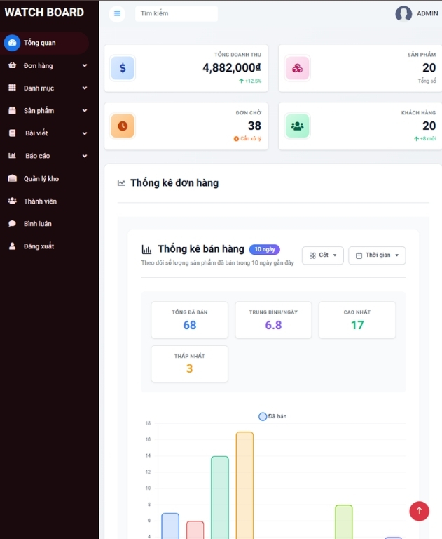 Hệ thống giúp người quản trị quản lý toàn bộ cửa hàng chỉ trong một trang admin, thao tác nhanh và thuận tiện.