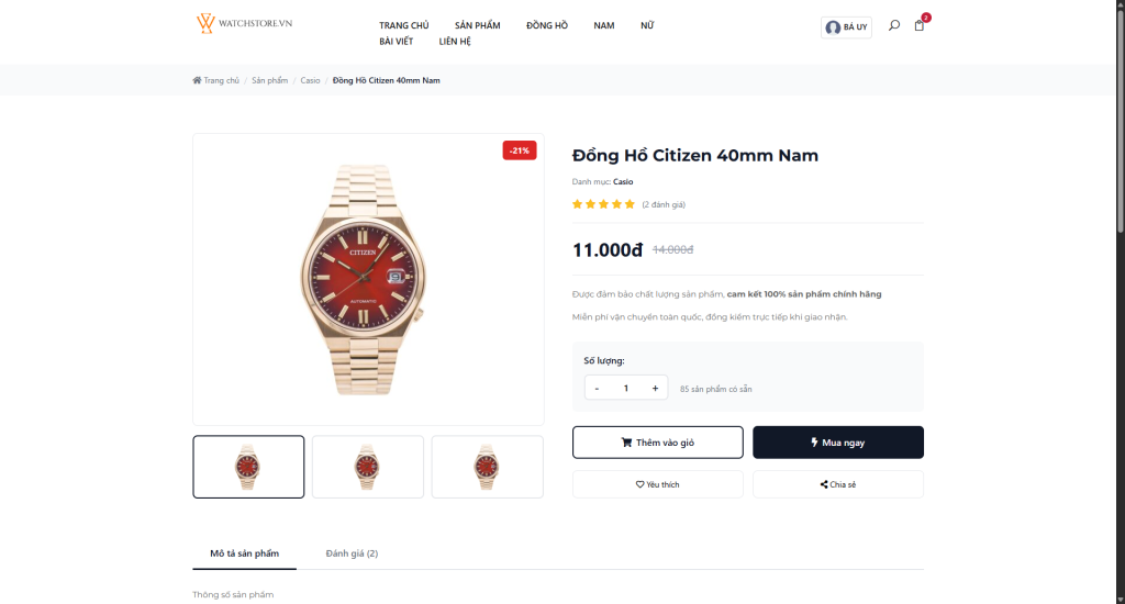 Review Source code website Hệ thống cửa hàng bán đồng hồ phụ kiện